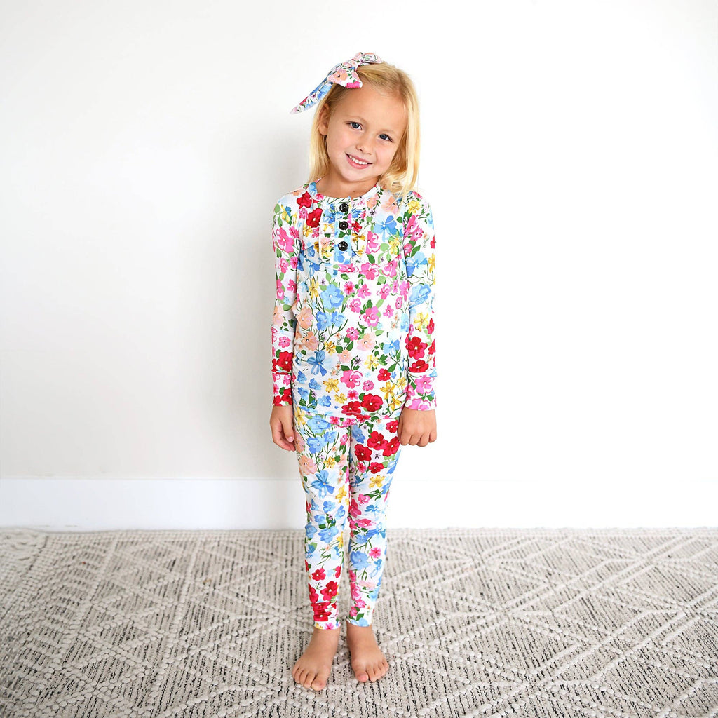 Gigi And Max Kaylee Ruffle Two Piece Bamboo Floral Lounge Set Girls